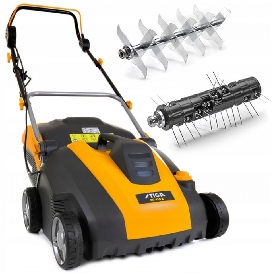 Аэратор-скарификатор для газона электрический имеет мощный электродвигатель. Рабочим органом инструмента является система из 20 ножей или 44 пружин, которые обеспечивают ширину обработки 38 см. Рабочая глубина регулируется в пределах от -13 мм до +4,5 мм. Ножи аэратора прорезают в почве глубокие узкие каналы, позволяя кислороду, воде и удобрениям проникать к корням травы. Так же аэрация позволяет приостановить рост и распространение мха на газоне.