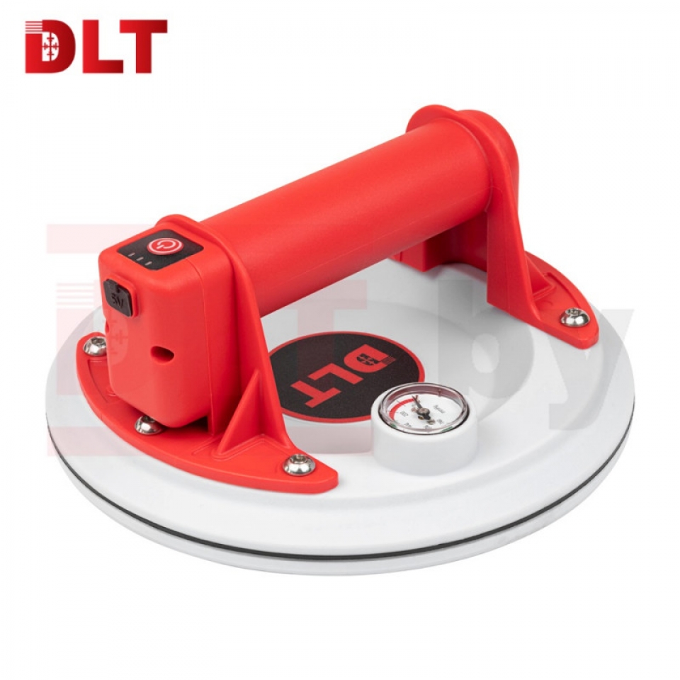 Присоска DLT VST-200 NEW оснащена встроенным электрическим насосом, датчиком давления и манометром давления для визуального контроля. Датчик давления в DLT VST-200 анализирует силу разрежения воздуха и автоматически включает насос, когда требуется восстановить необходимые параметры вакуума (автоматическая подкачка).